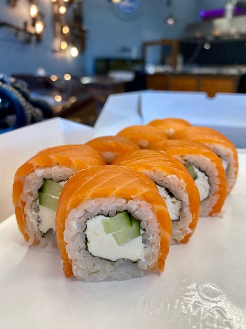 Сыр сливочный, огурец, лосось копченный(собственного производства