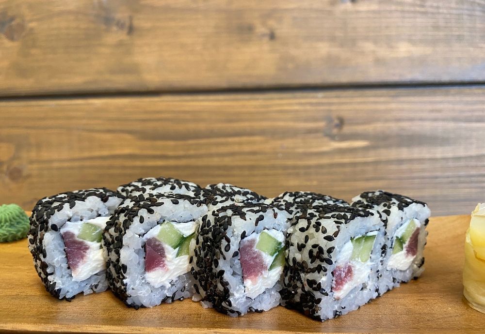 Сливочный сыр, тунец, огурец, кунжут чёрный