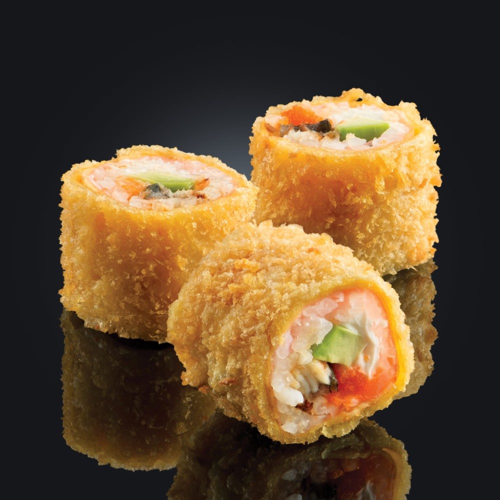Угорь, Авокадо, Масаго, Сливочный сыр, Рис, Мамэнори, Тэмпура.