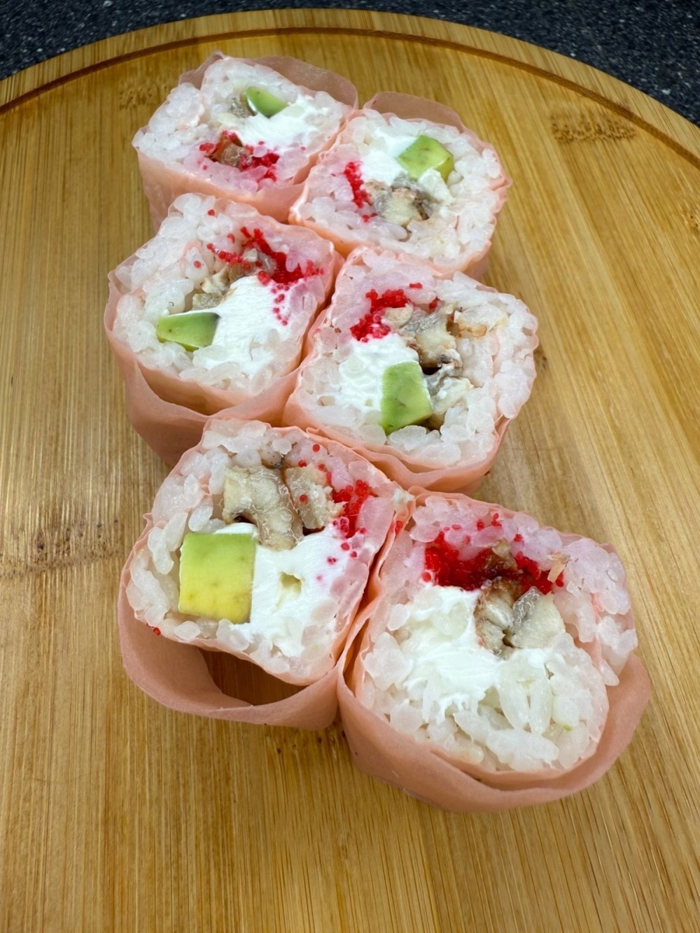 Рис, Сливочный сыр, Угорь, Масаго, Авокадо, Мамэнори.