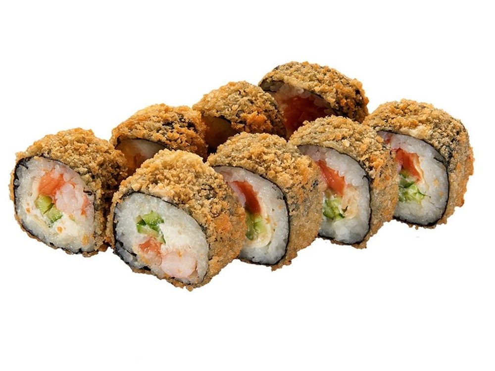 сыр сливочный, масаго, креветка , авокадо, лосось, кляр, сухари