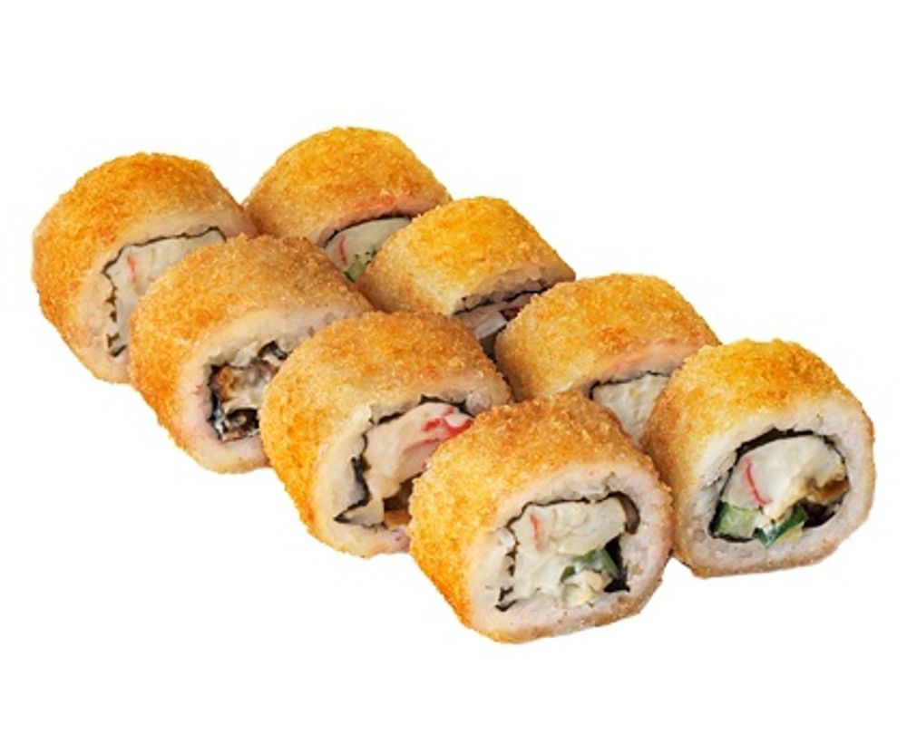 Сливочный сыр, угорь, крабовое мясо, огурец, кляр, сухари, соус унаги выход