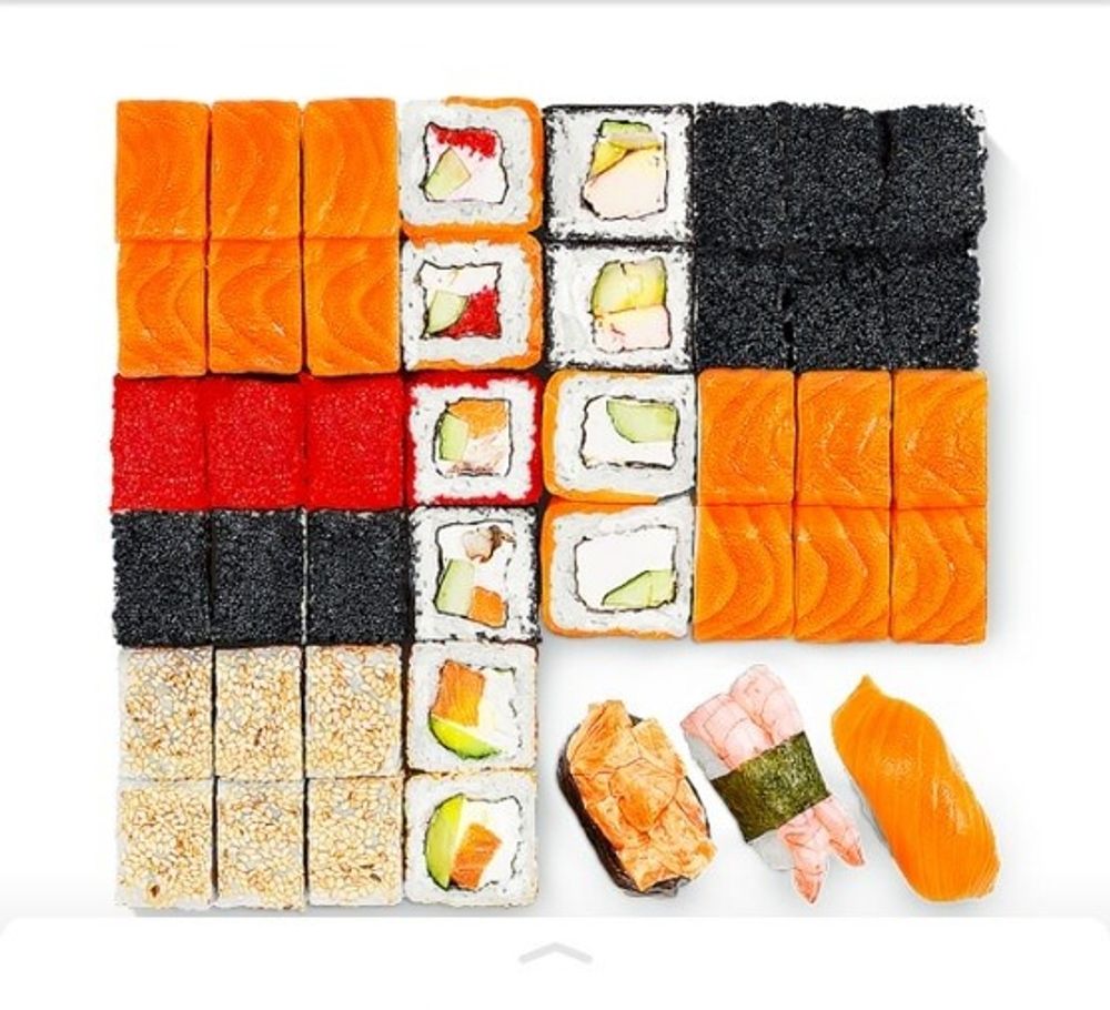 Филадельфия классическая, Филадельфия лайт, шахматы, Филадельфия shot, калифорния с креветкой, гункан спайси лосось, суши креветка, суши лосось.